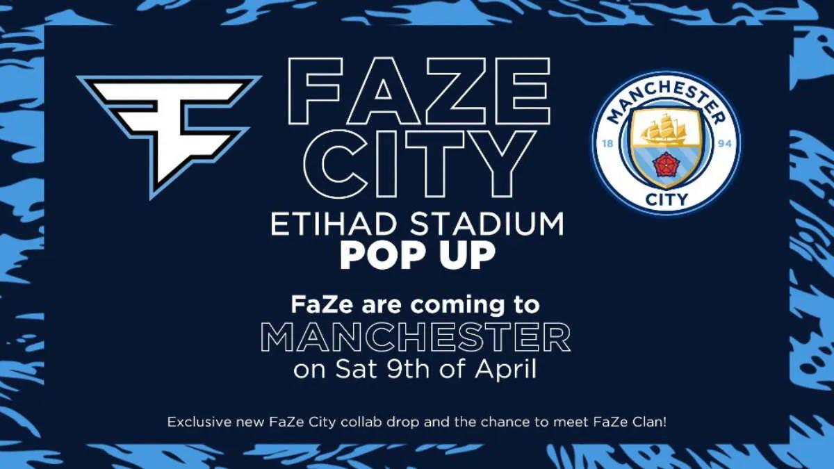 The North American esports organization FaZe Clan has announced a joint event with the English football club Manchester City. As part of the collaboration, the two sides will open a merchandise store ahead of the club's upcoming match against Liverpool FC scheduled for April 10.